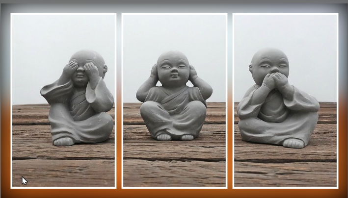 Ajoutez 3 images 2:3 à la liste de diapositives. Sélectionnez les trois et appliquez ce style. Ajuster la bordure, etc. dans les propriétés O&A. |